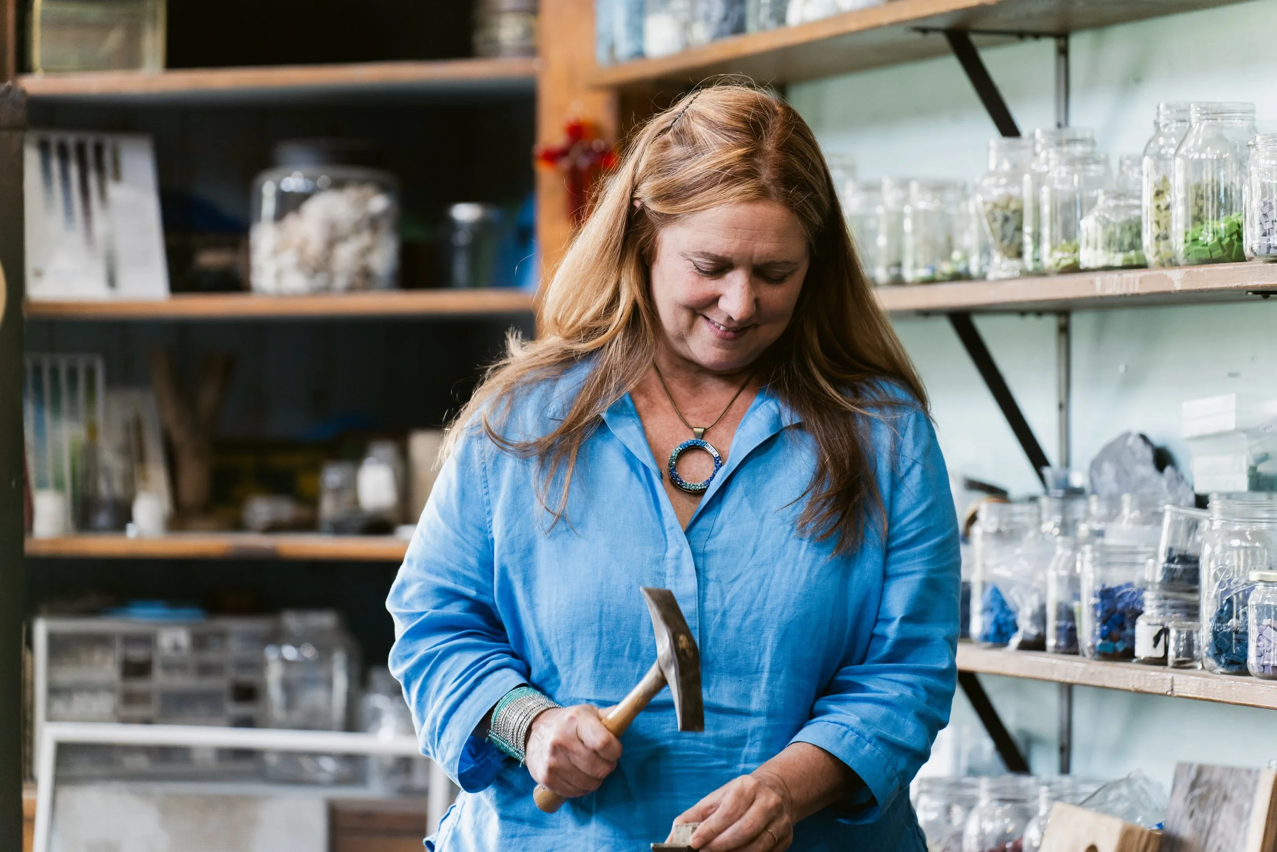 A native of Southwestern Pennsylvania, Rachel Sager works on the cutting edge of the contemporary mosaic fine art movement. Her imaginary map-like mosaics have been featured internationally and in cities throughout the U.S. where she has received multiple Best in Show Awards in juried exhibitions and the MAI 2018 Best Architectural & Site-Specific Mosaic for The Fishers of Men Manannán mac Lir Mosaics: Spirit of Place located in the Cong Woods of County Mayo, Ireland.